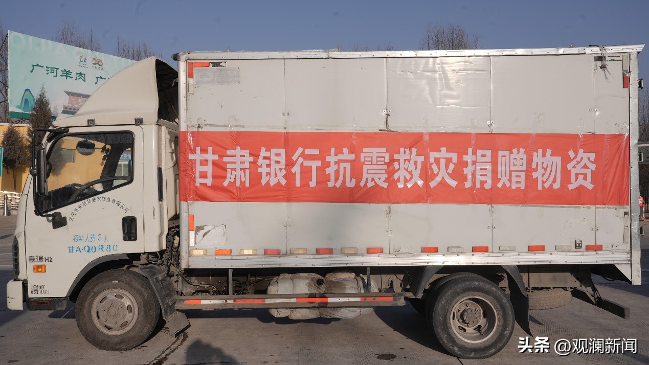 12月20日早晨7:30,3辆装满抗震救灾物资的车辆从甘肃银行启程发往灾区,支援当地抗震救灾工作。